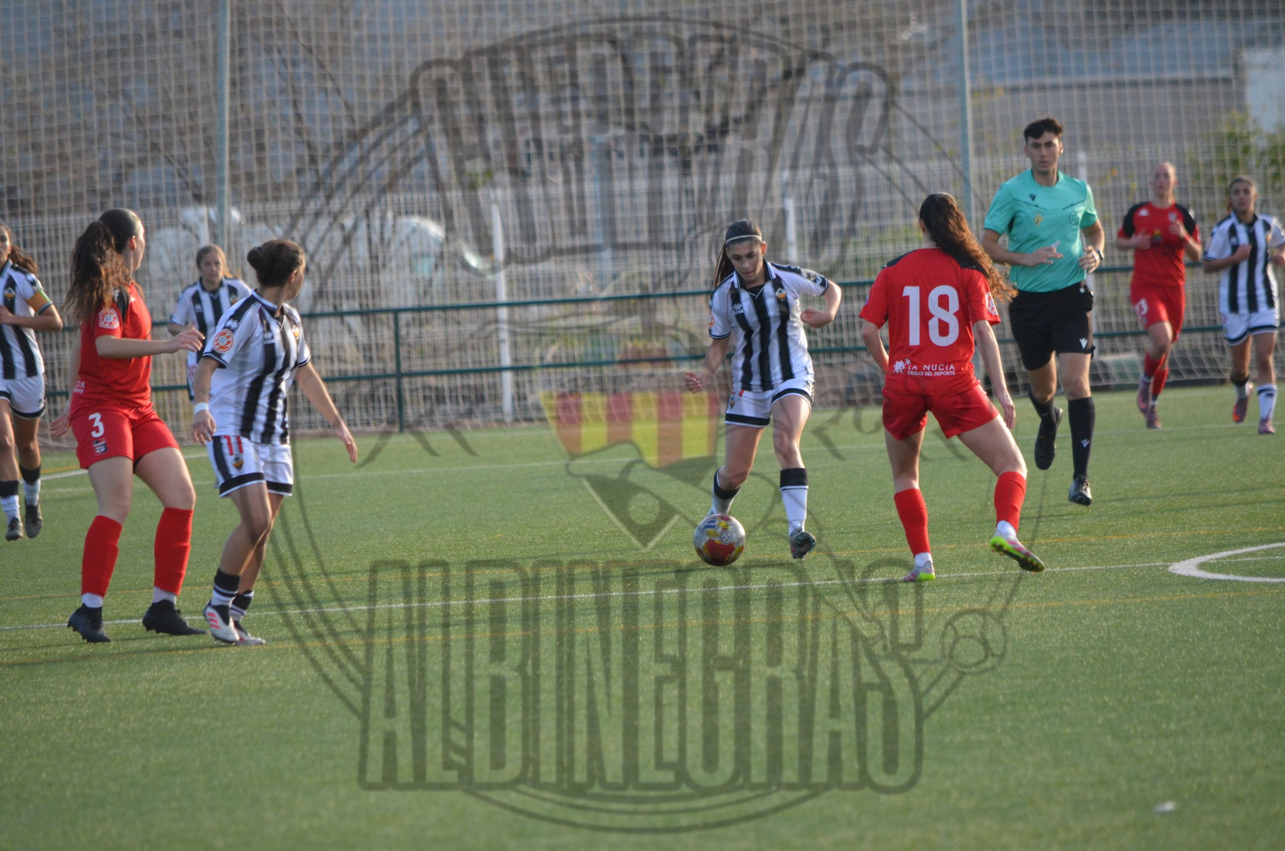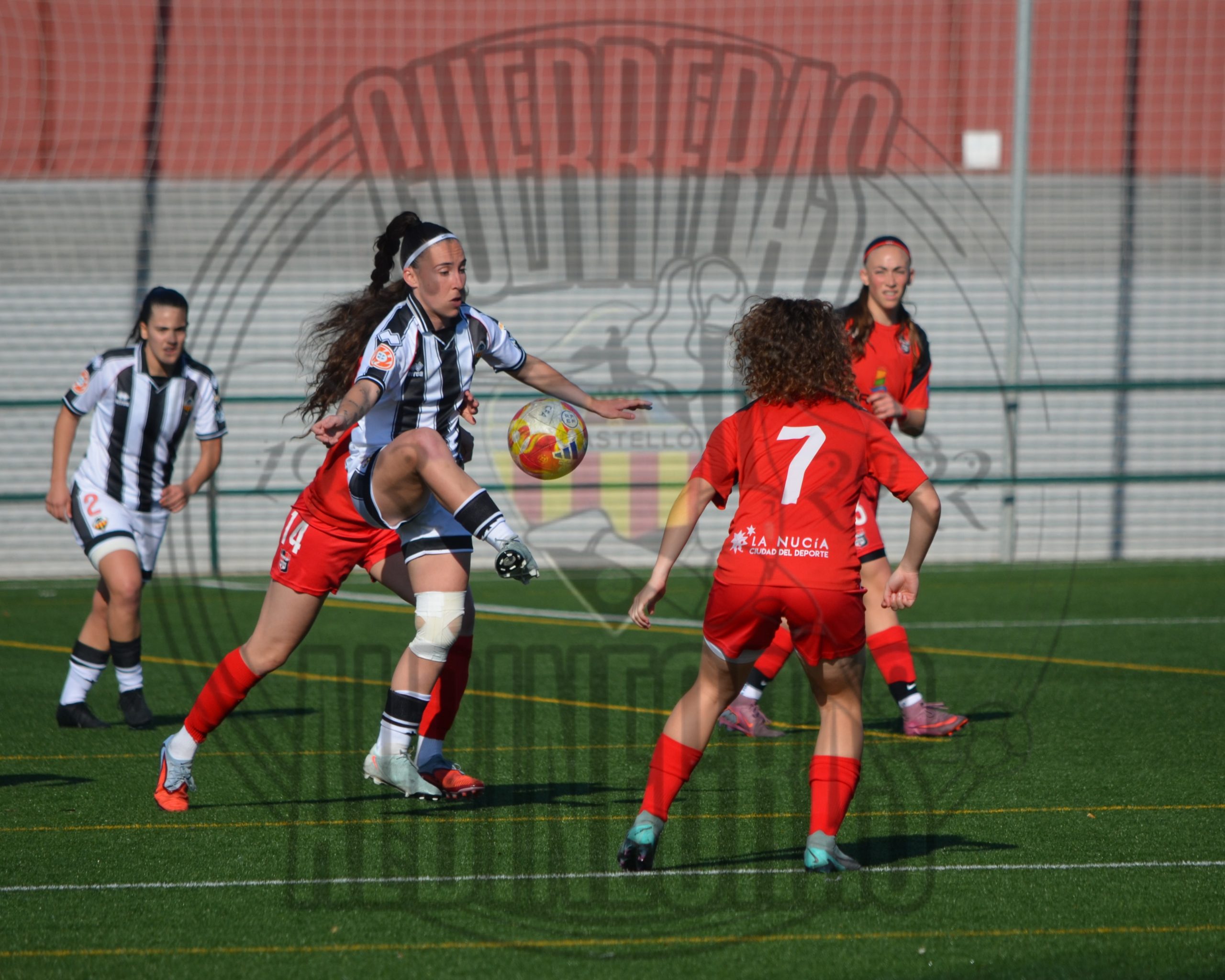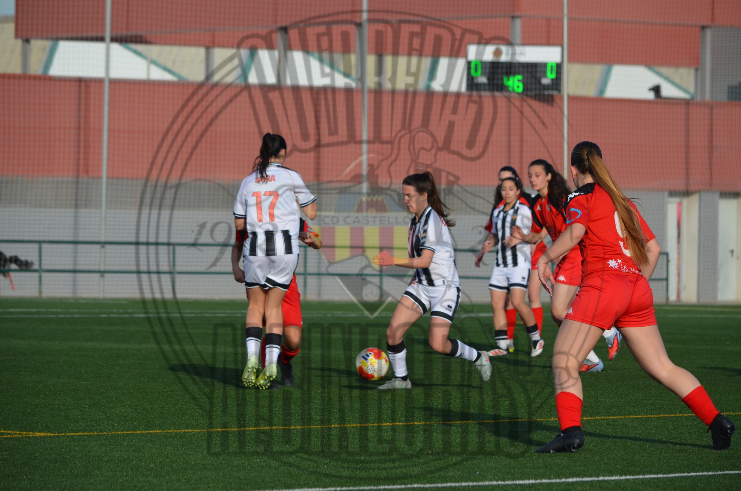 Desde el pitido inicial, las castellonenses quisieron llevar la iniciativa. Intensidad, circulación rápida y valentía por bandas. Sin embargo, el conjunto visitante demostró haber estudiado a la perfección cada movimiento albinegro. La línea defensiva de La Nucía se mostró férrea y perfectamente coordinada, dejando una y otra vez a nuestras atacantes en posición antirreglamentaria. El fuera de juego fue un muro invisible que desesperó a la grada.