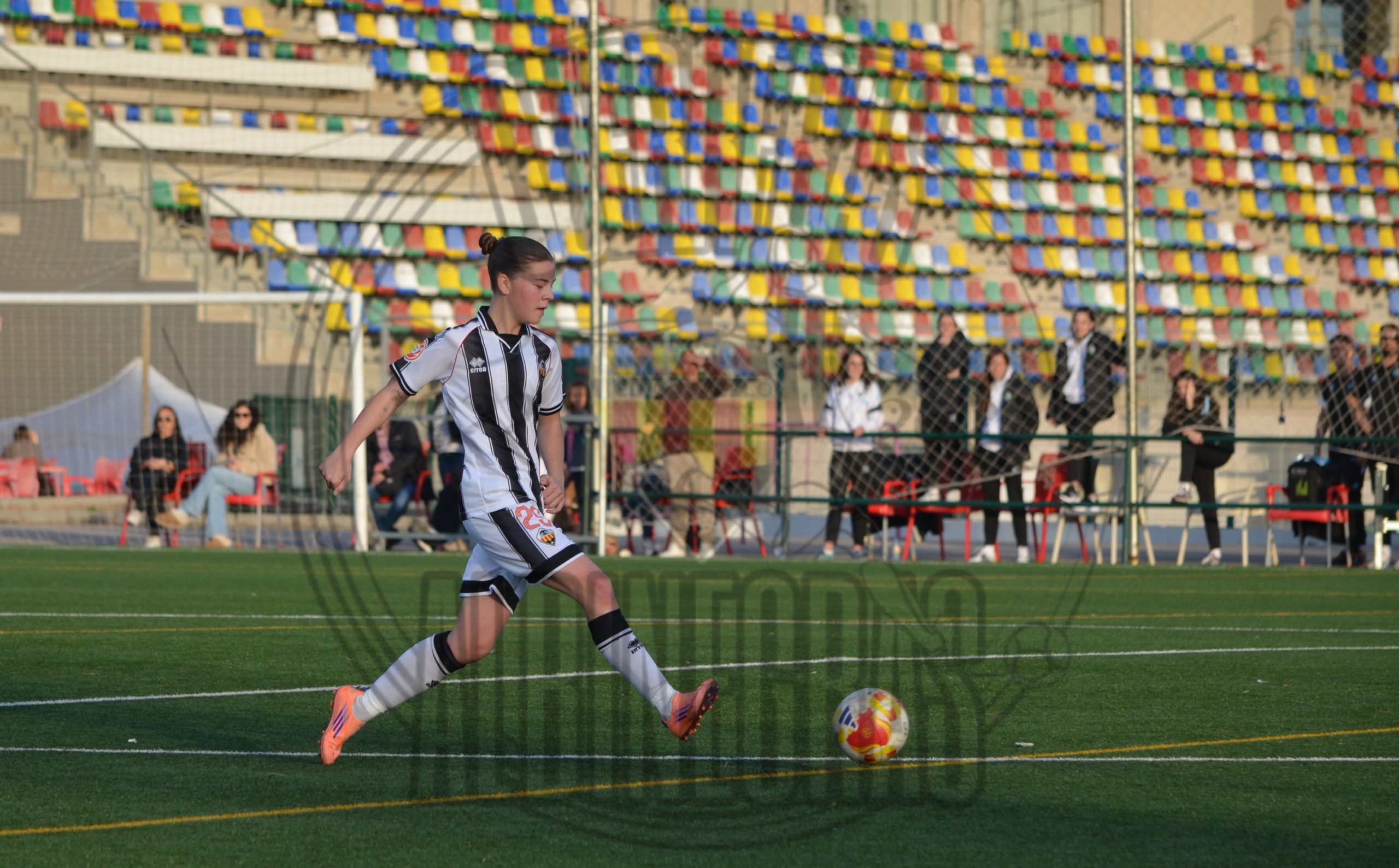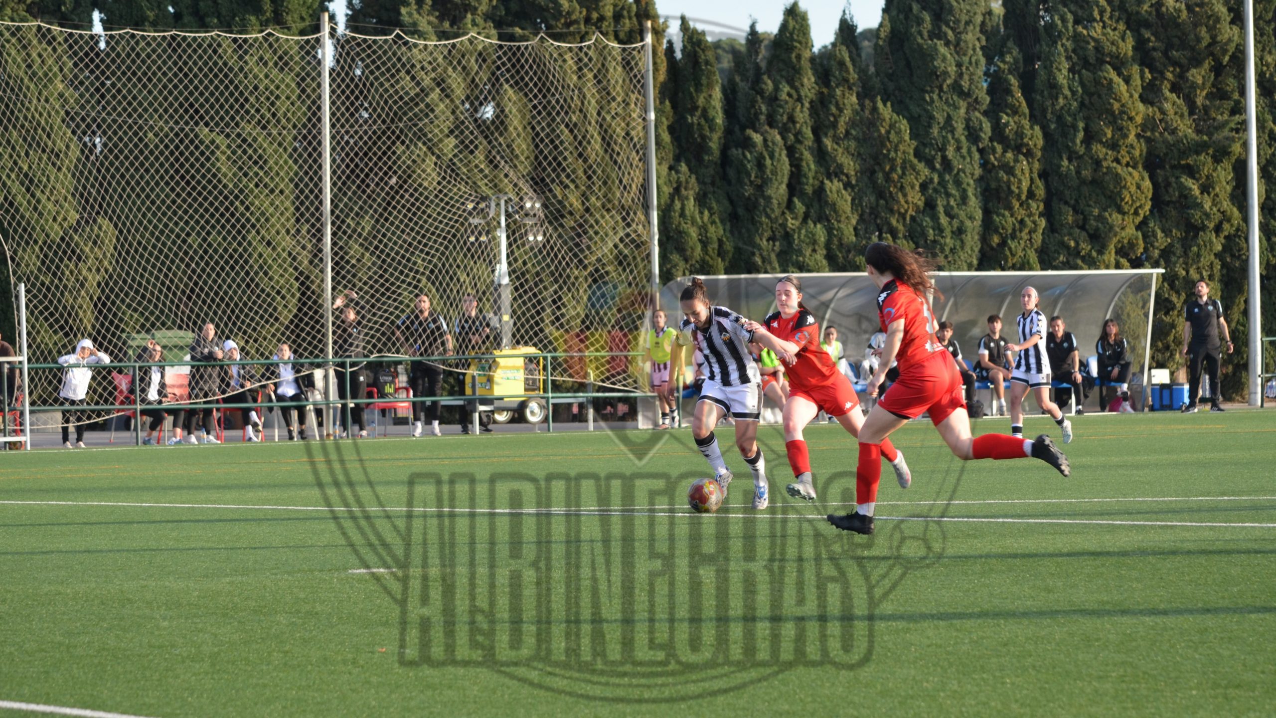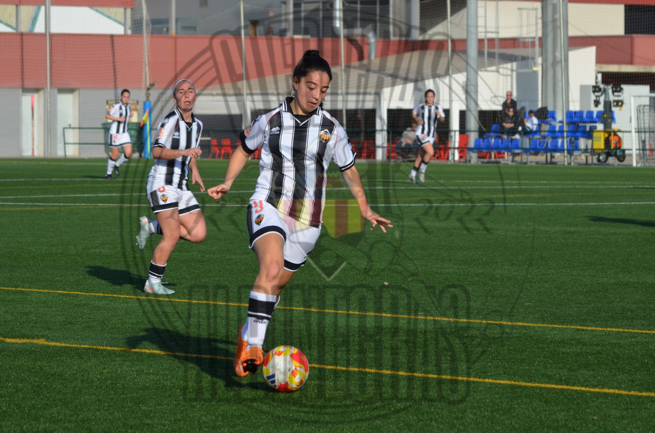 Desde el pitido inicial, las castellonenses quisieron llevar la iniciativa. Intensidad, circulación rápida y valentía por bandas. Sin embargo, el conjunto visitante demostró haber estudiado a la perfección cada movimiento albinegro. La línea defensiva de La Nucía se mostró férrea y perfectamente coordinada, dejando una y otra vez a nuestras atacantes en posición antirreglamentaria. El fuera de juego fue un muro invisible que desesperó a la grada.