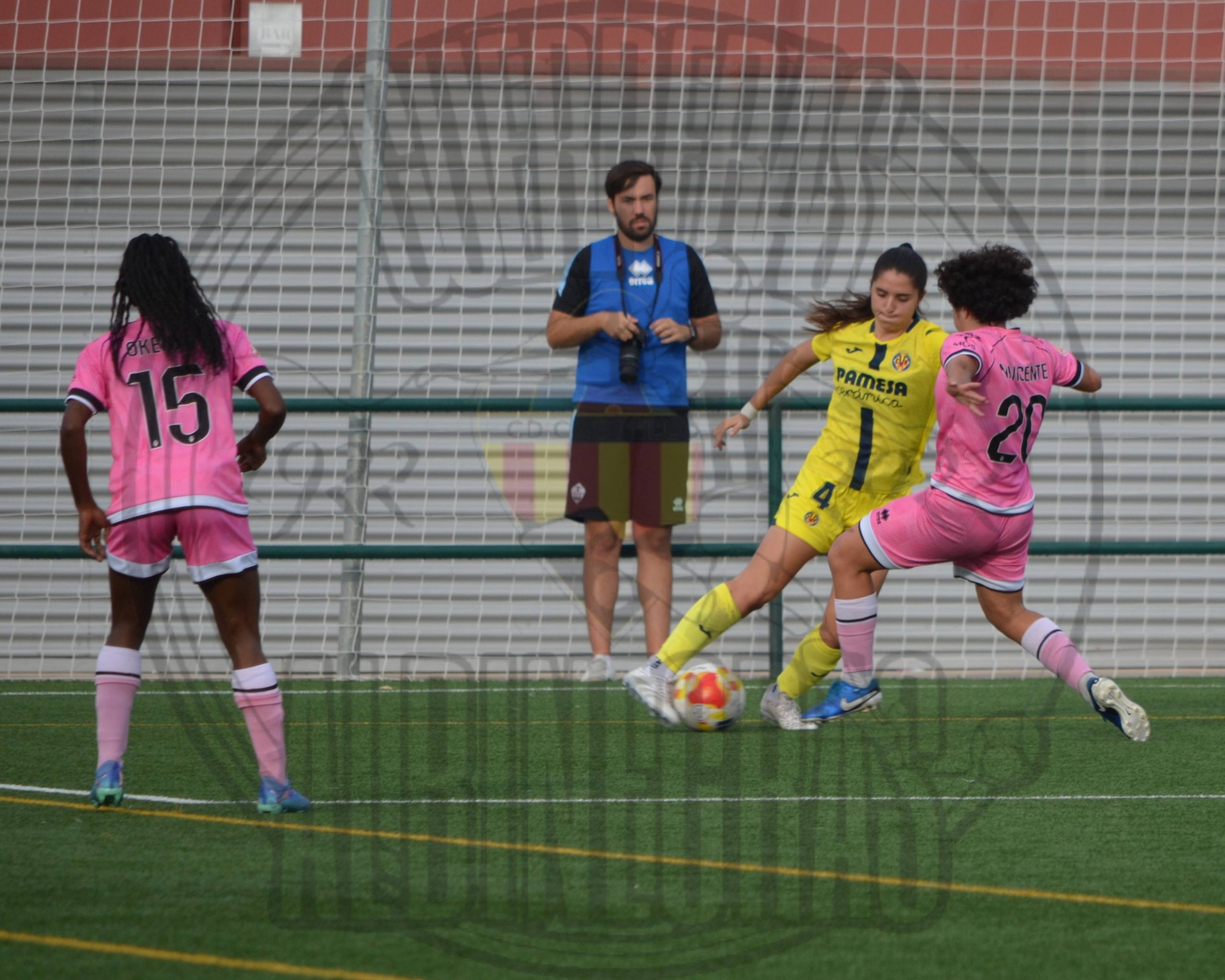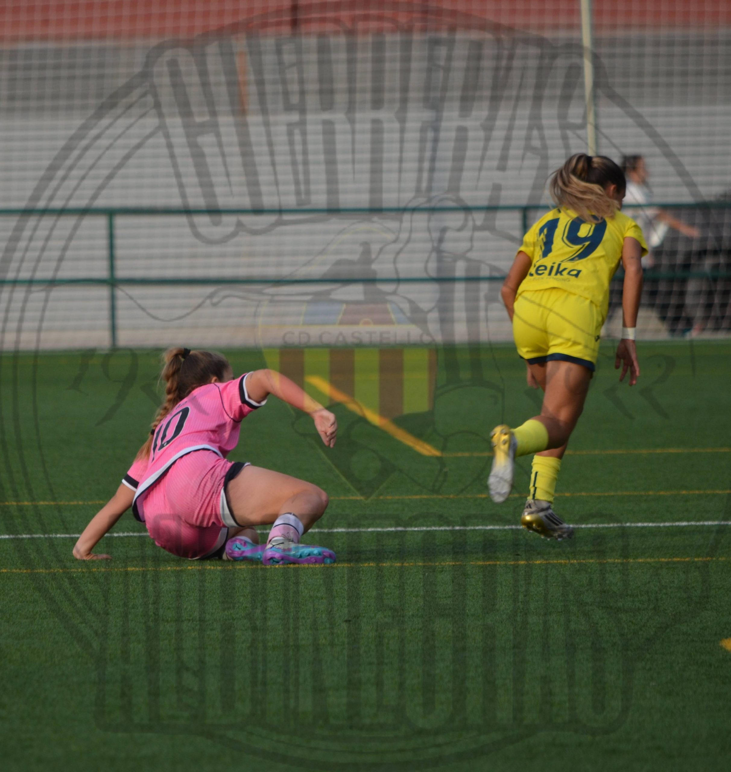 Desde el pitido inicial las albinegras salieron a morder. En el minuto de l encuentro 2, cómo no, Nerea Vicente volvió a hacer de las suyas marcando el 1-0 y encendiendo el estadio. El Castellón seguía apretando, luchando cada balón como si fuera el último, pero el descanso llegó con ese marcador corto que dejaba todo abierto.